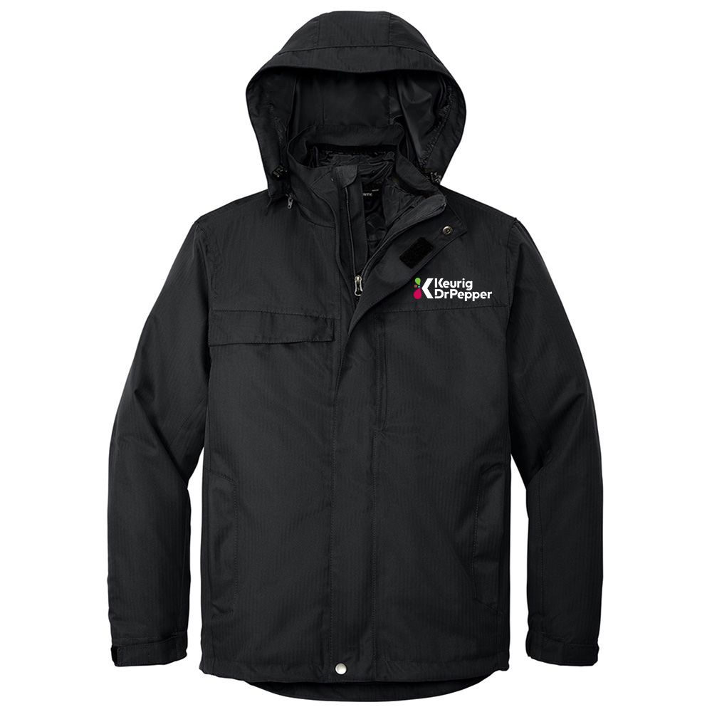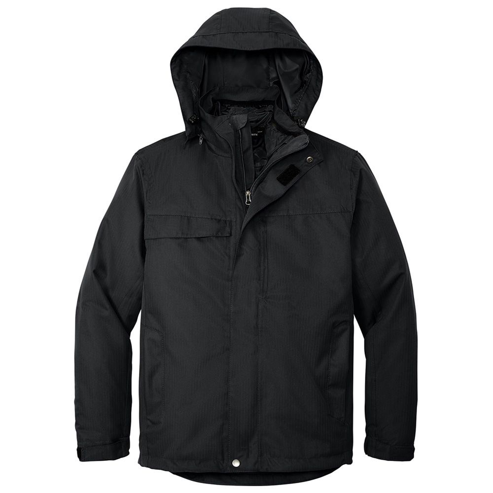 Two separate jackets combine to give you a third option so you're ready for whatever Mother Nature dishes out. The waterproof shell has a subtle herringbone texture a soft hand a detachable hood and two exterior storm flaps. The quilted inner jacket has two zippered pockets and an interior zippered chest pocket. Both jackets are ready for decoration. 100% polyester 8000MM fabric waterproof rating Fully seam-sealed for additional waterproof protection 3000G/M fabric breathability rating Detachable hood with drawcord and toggles for adjustability Zippered chest pocket Front zippered pockets External storm flaps with hook and loop closure Self-fabric adjustable cuffs with hook and loop closures Inner jacket has front zippered pockets inner zippered chest pocket Lycra binding at neck and cuffs Open hem with drawcord and toggles for adjustability