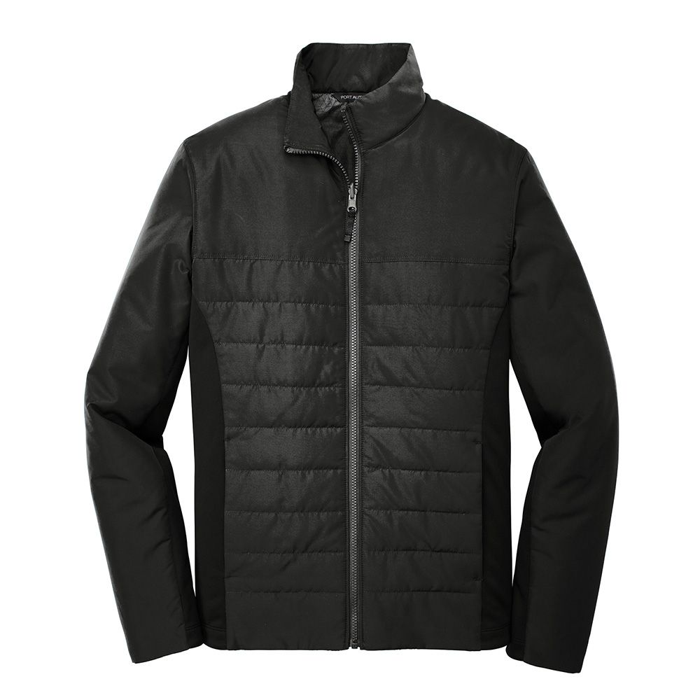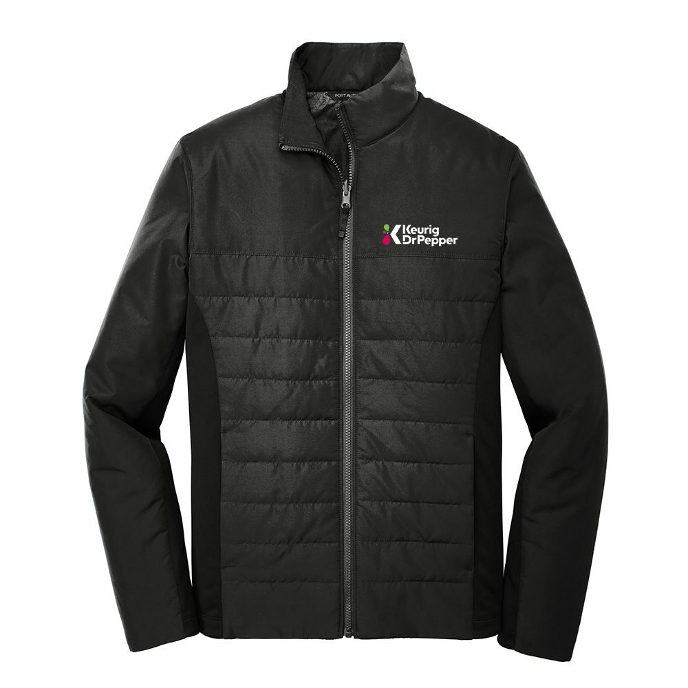 Can be zipped in and secured by snap attachments inside an outer Collective layer 100% polyester woven shell 100% polyester knit bonded to a water-resistant film insert and a 100% polyester microfleece lining at side panels and under arms 100% polyester printed lining with insulation behind the outer woven shell Slightly longer length Zip-through cadet collar Vislon® center front zipper Stretch side panels Open front pockets Port Pocket™ for easy embroidery access Open cuffs and hem