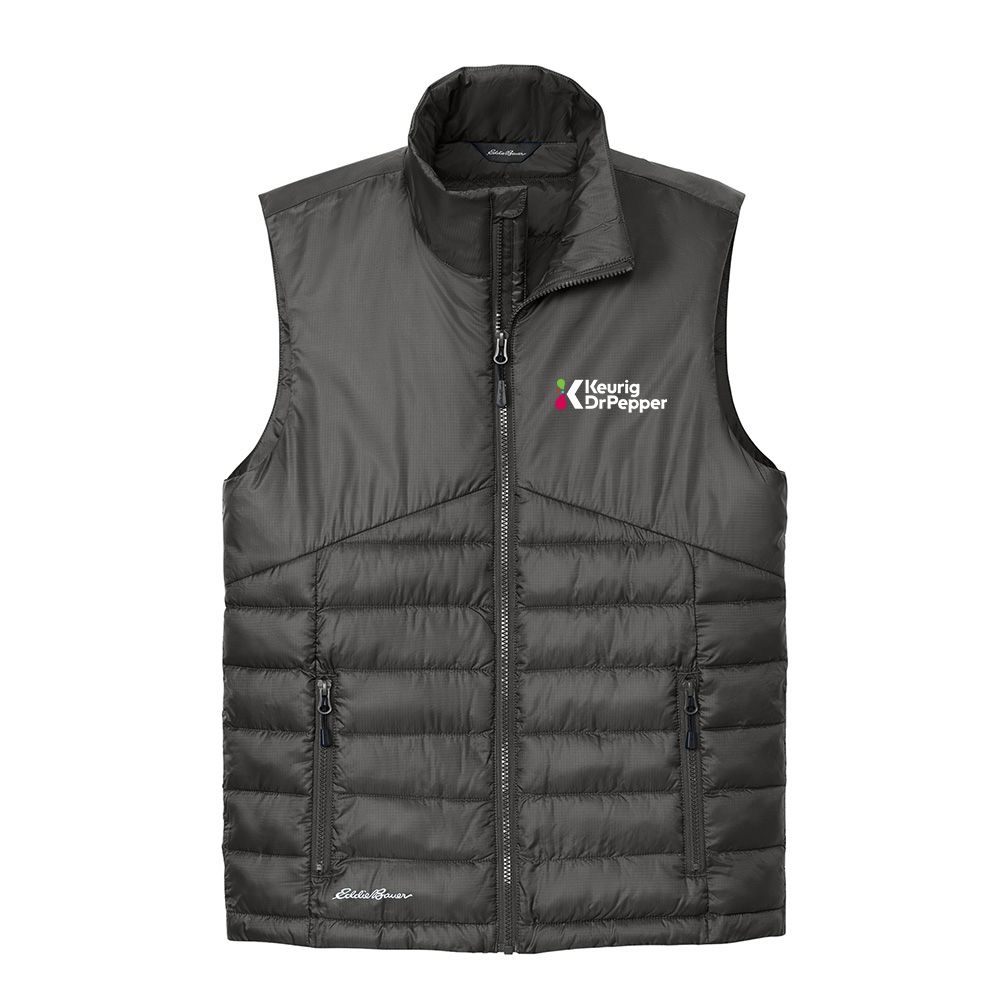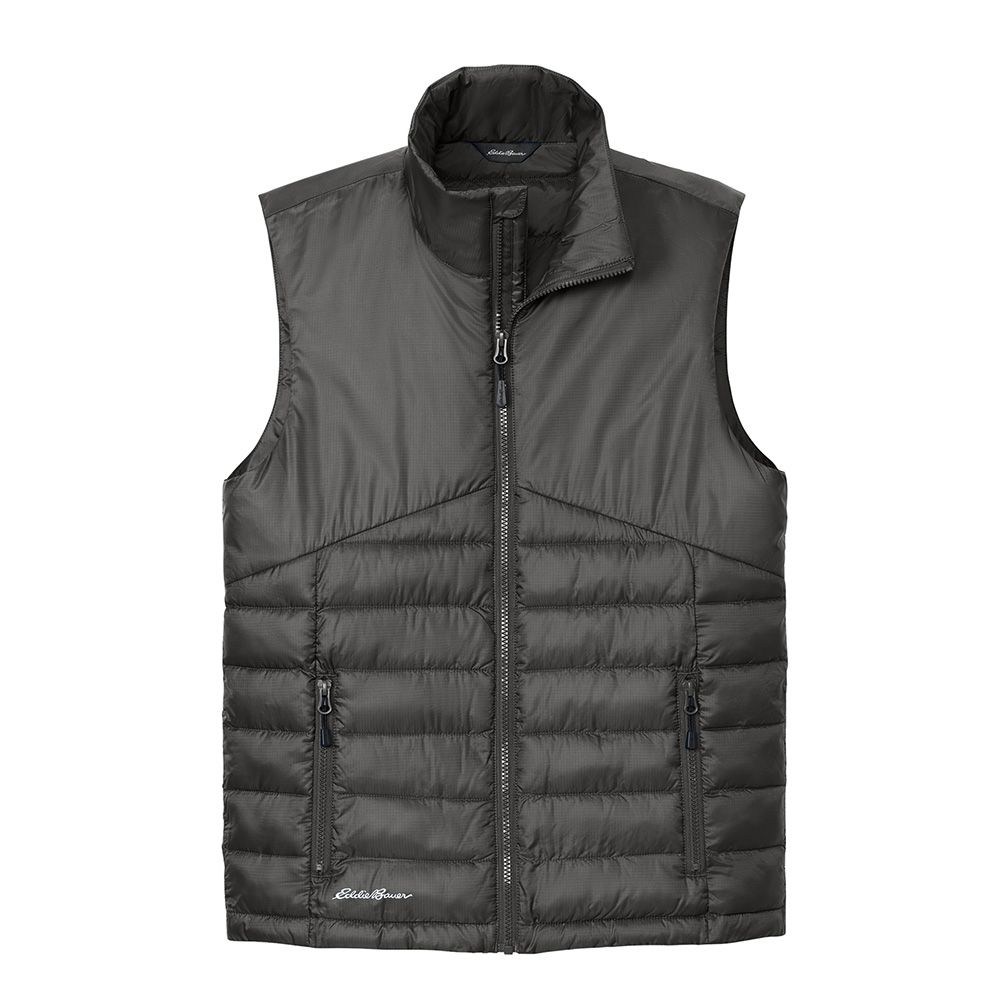• Minimal bulk meets maximized performance in this quilted vest that is built for your cold-weather adventures • Exposed, molded zippers with Eddie Bauer logo pulls • Zippered hand pockets • Contrast Eddie Bauer heat transfer logo on right hem • Made of 100% polyester shell and lining • 3-ounce, 100% polyester fill • Durable water-repellent (DWR) finish with a PU coating.
