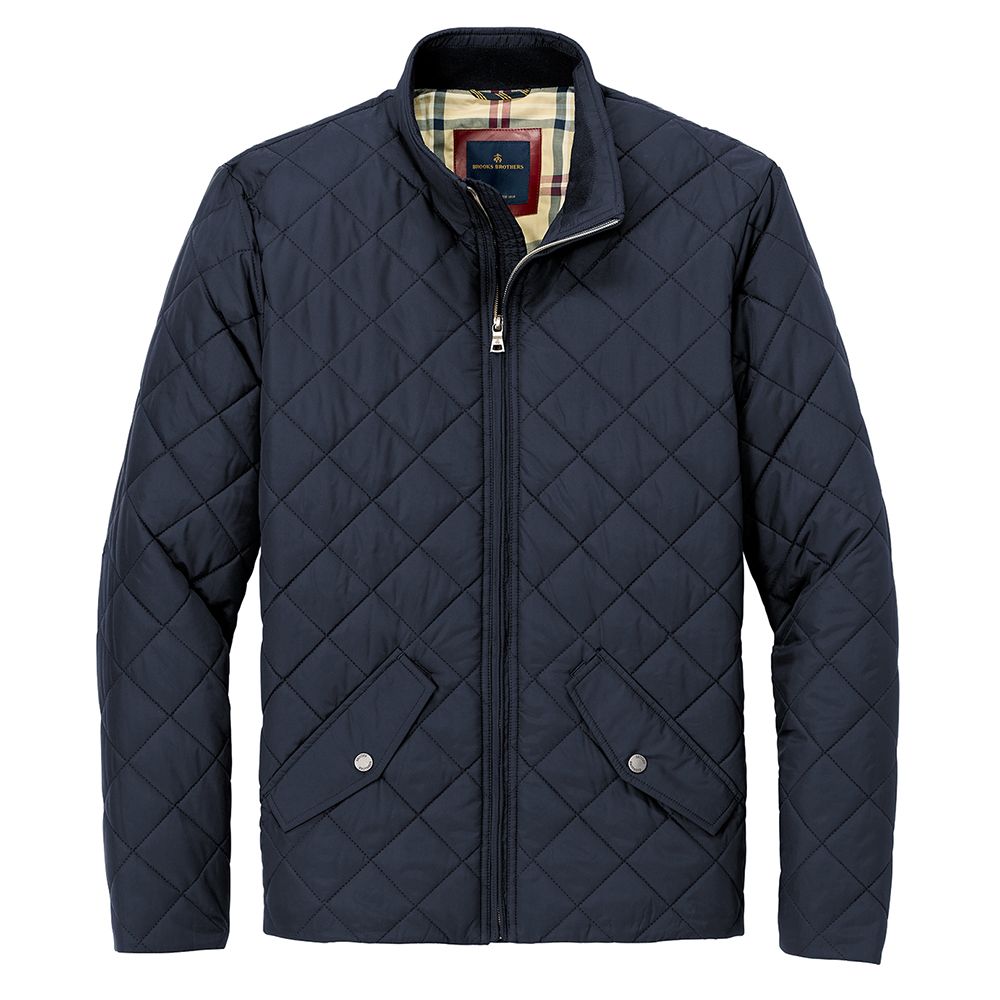 • With a supple diamond-quilted shell designed to resist water and provide warmth when you need it, this jacket delivers unbeatable performance and unmistakable style. • 100% polyester shell and lining • 2.9-ounce polyfill insulation • Brooks Brothers tie-stripe hanging loop • Metallion coil front zipper with metal Brooks Brothers Golden Fleece logo zipper pull and piped kissing welt • Rib knit lined collar • Hand pockets secured with flaps and Brooks Brothers logo snaps • Interior zippered chest pocket • Brooks Brothers tartan plaid on interior yoke and inside hand pockets • Faux leather label patch • Decoration access pocket