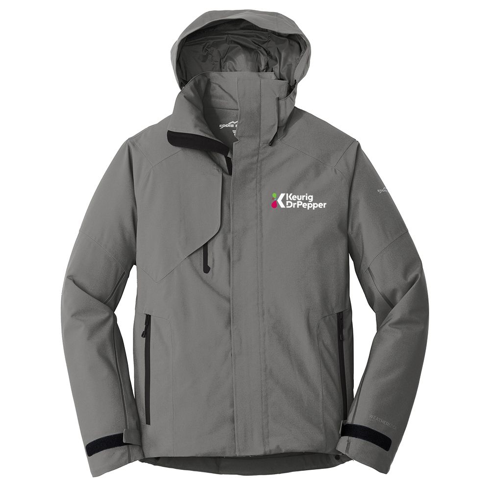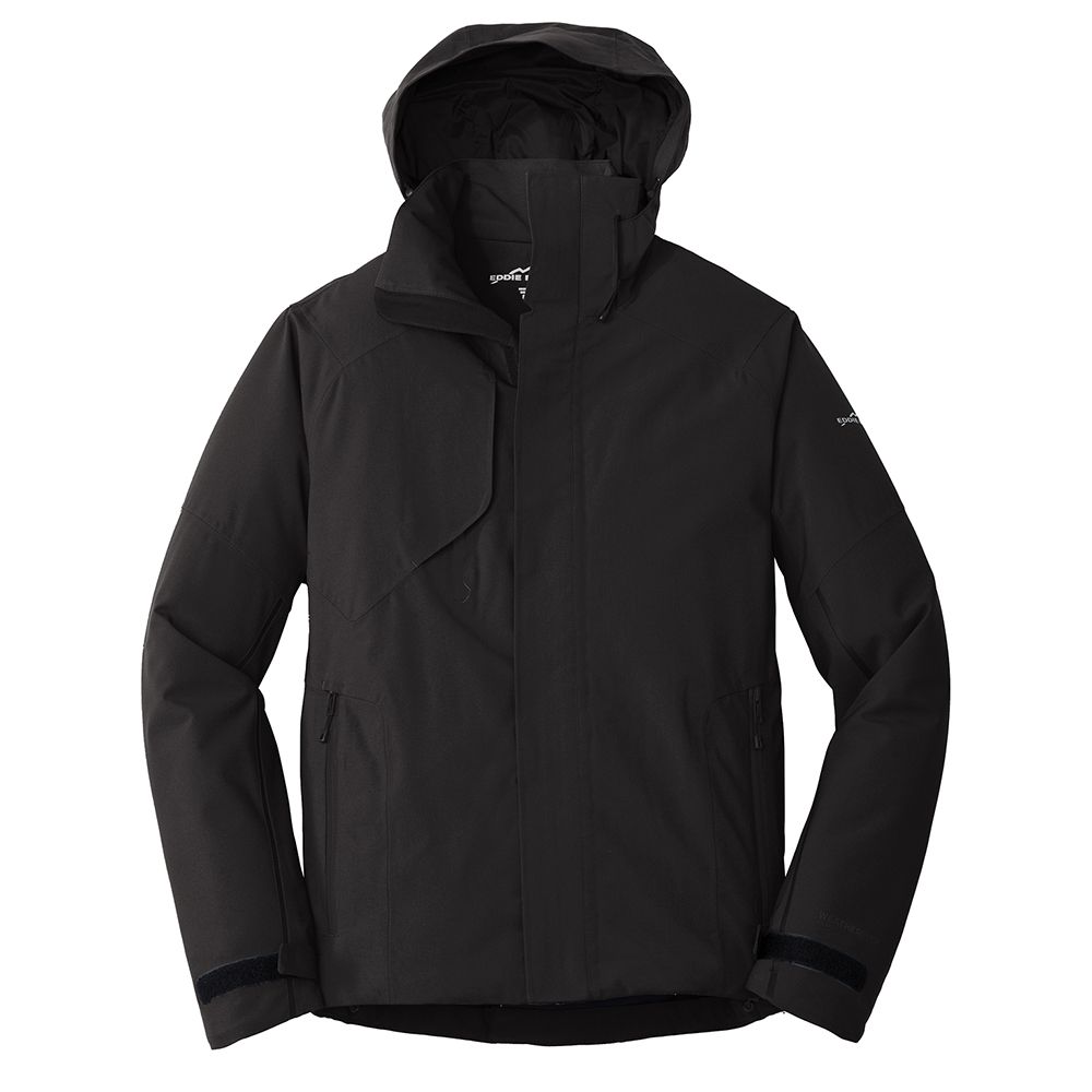 Built to outlast the elements this fully seam-sealed technical jacket has exceptional 10K/10K fabric waterproof and breathability ratings thanks to exclusive WeatherEdge Plus technology. Exclusive StormRepel durable water-repellent (DWR) coating adds extra exterior weather protection. Fully insulated this jacket also provides long-lasting warmth and comfort when temps drop. Detachable adjustable hood with locking drawcord full-length exterior storm flap and ventilating pit zips. Welded front zippered pockets with waterproof zippers. Welded right chest pocket with interior media port. Interior pocket with elastic to store goggles hat and bulkier items. Adjustable tab cuffs with hook and loop closures. Adjustable locking drawcord hem. Contrast Eddie Bauer and WeatherEdge Plus logos heat transfers on left sleeve. Made of 100% polyester with durable water-repellent (DWR) coating and TPU film.