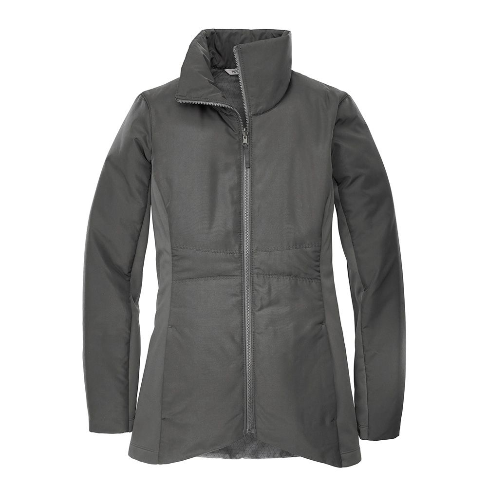 Can be zipped in and secured by snap attachments inside an outer Collective layer 100% polyester woven shell 100% polyester knit bonded to a water-resistant film insert and a 100% polyester microfleece lining at side panels and under arms 100% polyester printed lining with insulation behind the outer woven shell Slightly longer length Zip-through cadet collar Vislon® center front zipper Front and back waist details Stretch side panels Open front pockets Port Pocket™ for easy embroidery access Open cuffs and hem Tulip hem