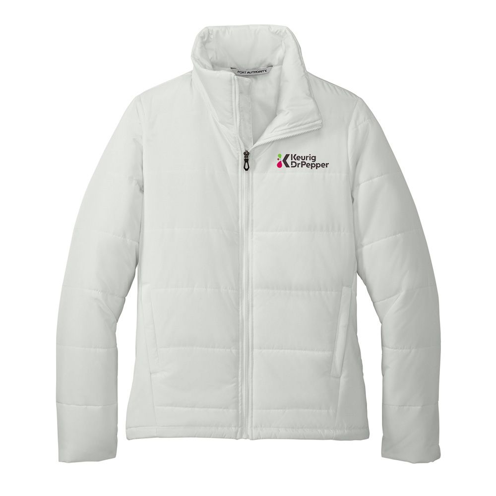 • With wider baffles for a modern look, this water-resistant puffer looks cool while keeping you warm. • 100% polyester shell and lining • Molded center front zipper • Interior storm flap • Interior right chest pocket • Zippered hand pockets • Insulation method: 4.4-oz. polyfill • Water protection method: water-repellent finish • Port Pocket for decoration access • Adjustable hem with locking drawcord