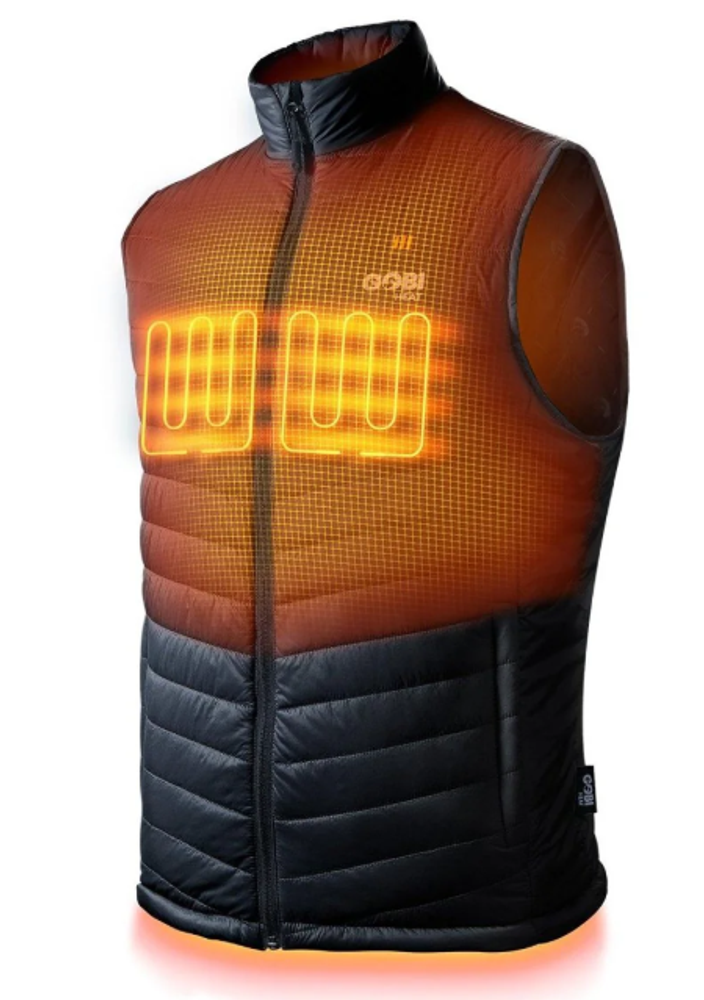 By combining lightweight, abrasion resistant nylon with conductive thread heating elements, our heated men's vest is your perfect solution for keeping warm on the go. The Dune Heated men's Vest provides up to 10 hours of electric warmth! Available in four colors (Onyx, Moss, Navy & Horizon) this vest has the ability to match any mood mother nature tosses at you. A low setting for those brisk days, medium for the cold ones and high for the bone chillingly "why do I live here?" ones! Our ultra compact battery supplies 3x the juice of other competitors and has a USB port for easy mobile charging.
