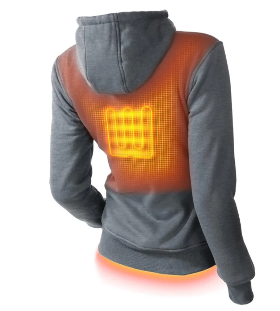 What makes our women’s heated hoodie better? Durability & duration. A single push of our one touch led controller activates the conductive thread heating technology in 3 locations & between 3 temperature settings. The durable cotton & polyester blend exterior keeps wind, rain & cold out while the lush polar fleece interior swaddles you in electric warmth. This womens heated sweatshirt can power your warmth for up to 10 hours and be machine washed & ready before your next adventure!