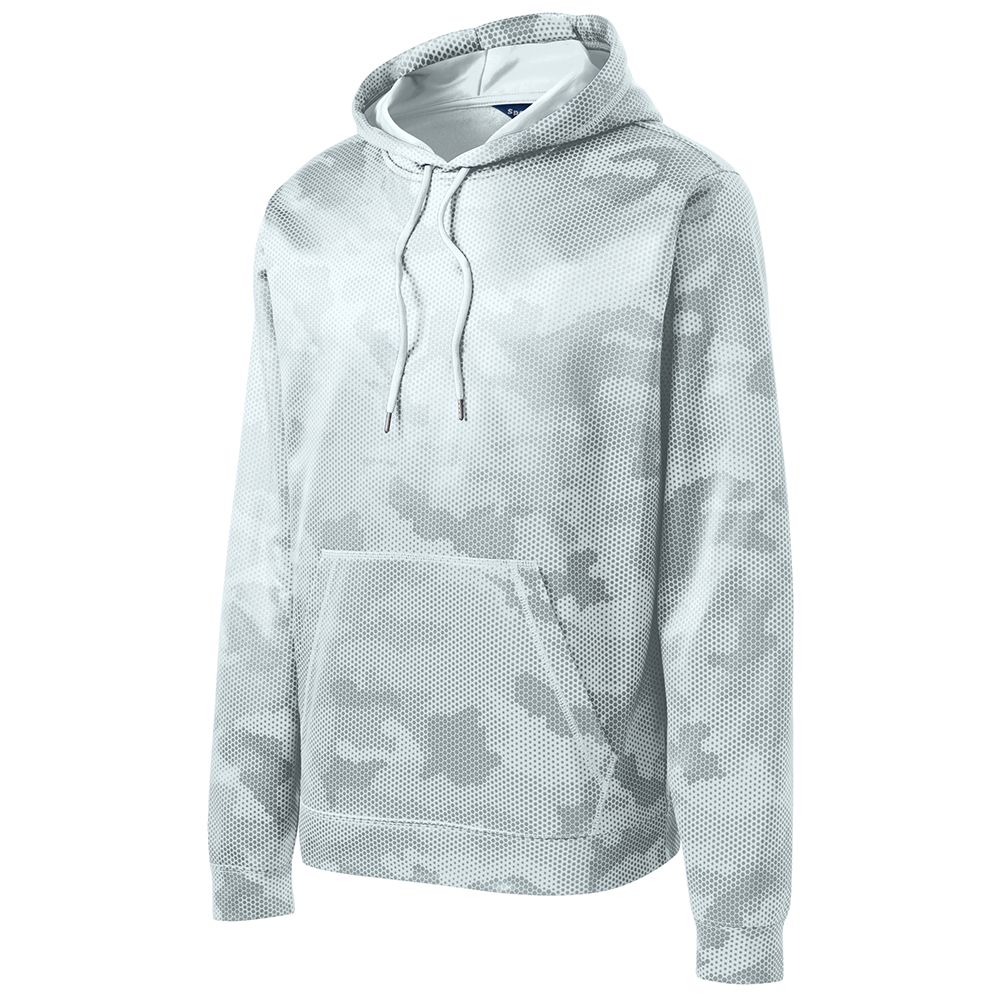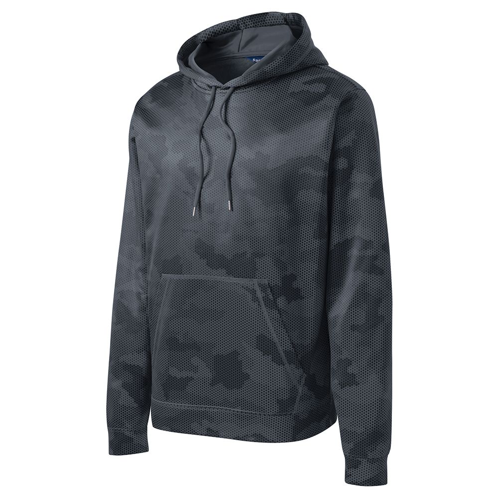 • It's CamoHex to the max with an all-over sublimated digital camo print in this anti-static, moisture-wicking pullover. • 5.5-ounce, 100% polyester • Three-panel hood with a solid dyed-to-match drawcord • Solid self-fabric hood lining • Taped neck • Self-fabric cuffs and hem • Front pouch pocket • *Please note: This product is transitioning from woven labels to tag-free labels. Your order may contain a combination of both labels*